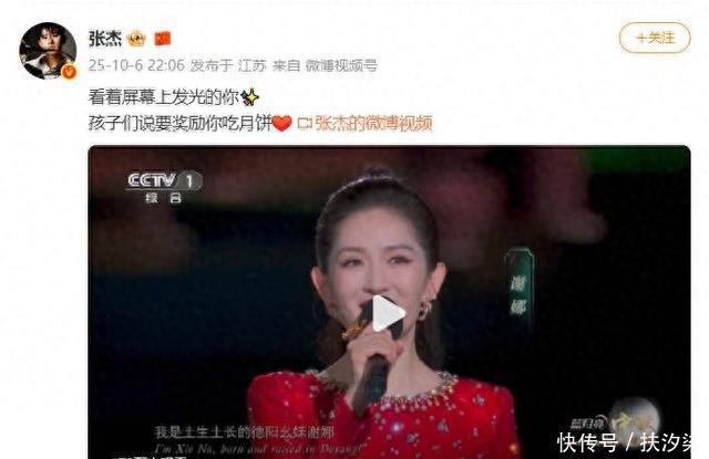 10񀙖日,中秋月圆之夜,一条来自张杰的微博悄然爬上热搜——“看着屏幕上发光的你;孩子们说要奖励你吃月饼”。这短短一行字,配以家人共聚观看直播的温馨想象,瞬间击中了无数网友心中最柔软的角落,其背后是一个家庭对女主人事业巅峰时刻的共同见证与深情告白。       微博中“发光的你”,指向的正是当晚在央视中秋晚会四川德阳分会场舞台上熠熠生辉的谢娜。这一次,她不再是综艺节目中那个活泼俏皮的主持人,而是以端庄大气、沉稳创新的姿态,首度站上了国家级盛典的主持席。她不仅带来了融合川味Rap的《火辣的毛毛血旺》,更将神秘的三星堆非遗元素巧妙融入表演,完成了从娱乐综艺主持人到国家级晚会主持人的关键转型,这无疑是谢娜职业生涯中一座重要的里程碑。       而在荧屏的另一端,是张杰与他们的三个女儿——跳跳、俏俏和小咘芽组成的“头号粉丝团”。他们守在家中,全程紧盯着直播画面。当孩子们看到妈妈在万众瞩目的舞台上从容自信、光彩照人的表现时,纯真的心灵被深深打动,主动向爸爸提议,要“用月饼奖励妈妈”。张杰用微博记录下的,正是这平凡却珍贵的瞬间,言语间满溢着对妻子专业成就的骄傲与一个家庭坚实的支持。       这种公开的肯定与欣赏,在两人的关系中早已有迹可循。2025年,在观看完谢娜的话剧演出后,张杰就曾发文感慨:“作为演员的你,站在舞台上闪闪发光”。而谢娜也屡次现身张杰的演唱会,被粉丝们生动地形容为“你在台上发光奔跑,我在台下点灯同行”。此次中秋夜的隔空互动,是这种相互欣赏与支持的又一次自然延续,更是张杰对妻子在新赛道上的专业价值所给予的公开且郑重的认可。       尤为动人的是孩子们自发的“奖励”提议。这并非一次刻意的家庭仪式,而是源于日常感恩教育的自然流露。它无声地宣告:在这个家庭里,每一位成员的成就都会被看见、被珍惜、被隆重地庆祝。一枚小小的月饼,承载的不仅是童真的爱意,更是这个家庭对“付出与收获”价值的共同认同。       当夜的聚光灯属于舞台上的谢娜,而微博背后的温暖则源于那个为她亮着灯的家。从综艺女王到国家级晚会主持人,谢娜的转型之路伴随着外界的目光与议论。然而,张杰的微博与孩子们的笑语,构成了最坚实的后盾。这幕中秋夜的家庭图景,其动人之处或许正在于此:无论外界的舞台有多大,最暖的港湾,永远是那个有人为你骄傲,并愿意为你备好一枚“奖励”月饼的地方。